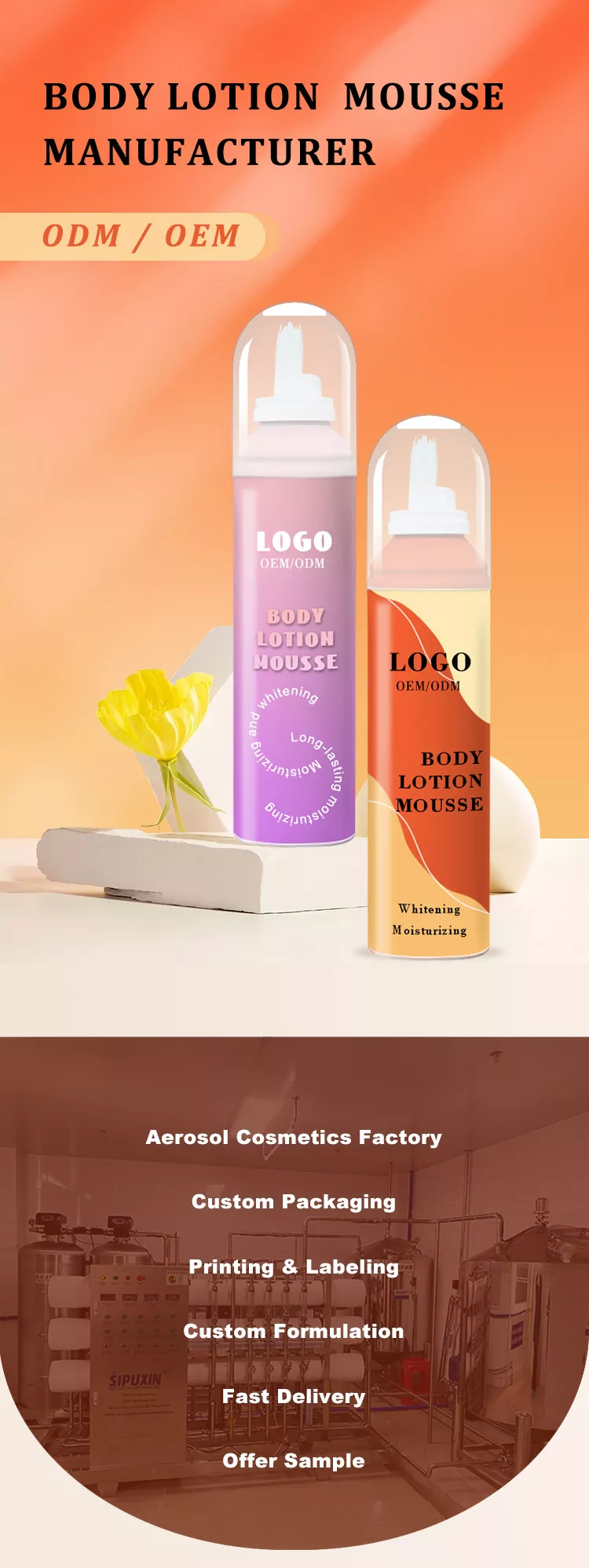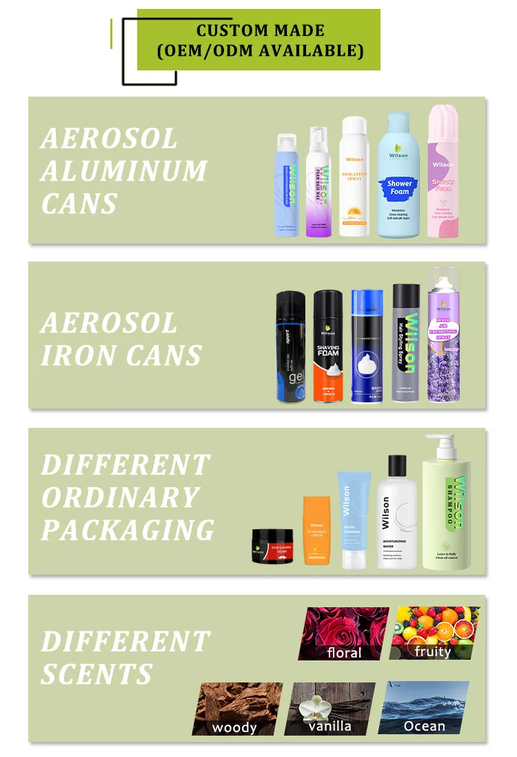 Wilson Quick Absorption Lightweight Texture Body Lotion Mousse הוא קרם לחות עמיד היכול להיספג בגוף. המוס שלנו מגיע בצורת אירוסול בפחית אלומיניום, המייצר קצף עשיר בלחיצה. בהשוואה לתחושה הכבדה והדביקה של קרמים מסורתיים, מוס הגוף שלנו מביא מגע קל, כמו ענן רך ודחוס. בנוסף, יש לנו מגוון תכשירים לבחירה, למשל, ניתן להוסיף לפורמולה מכילה תמציות לחות יעילות ביותר כגון חומצה היאלורונית מרובת, תמציות צמחים טבעיות וכו', אשר יכולות להפוך את מבנה המיקרו של הקצף למתאים יותר להרכב המרכיבים ישירות מתחת לעור, כך שיש לו לחות אינטנסיבית ונעילה, השפעה ארוכת טווח על לחות העור. העור מקבל לחות מבפנים החוצה.
